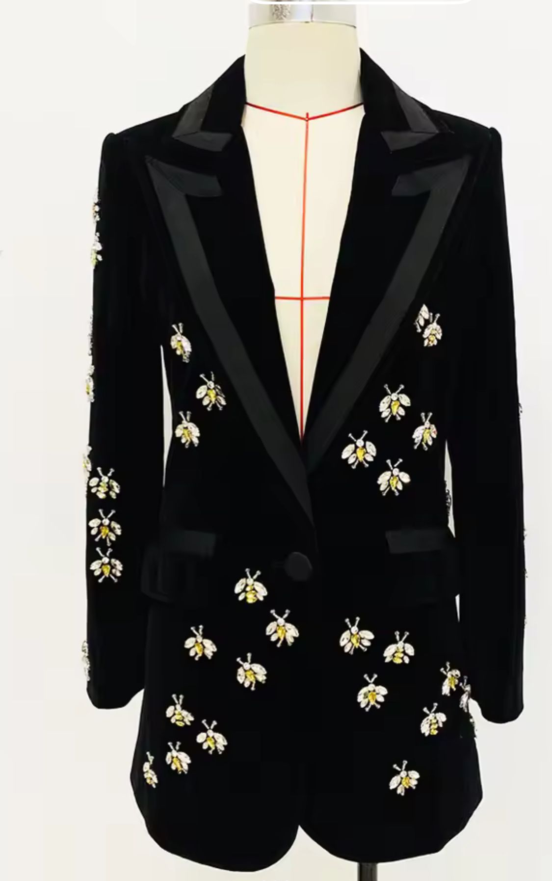 Spectacular rhinestone bees decorate this wonderful blazer.