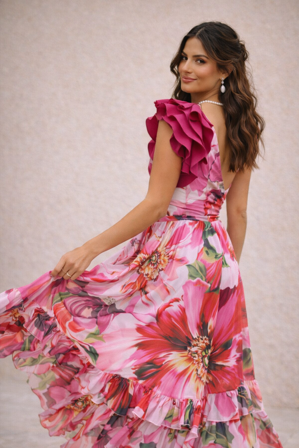 This vibrant and flattering design will add freshness and movement to your look.