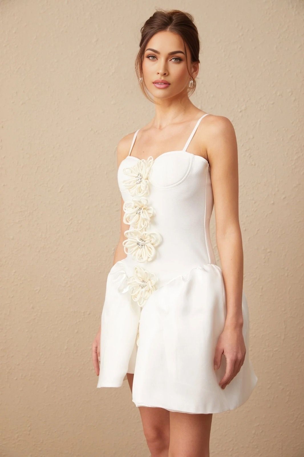 Short bandage dress in white with decorative flowers