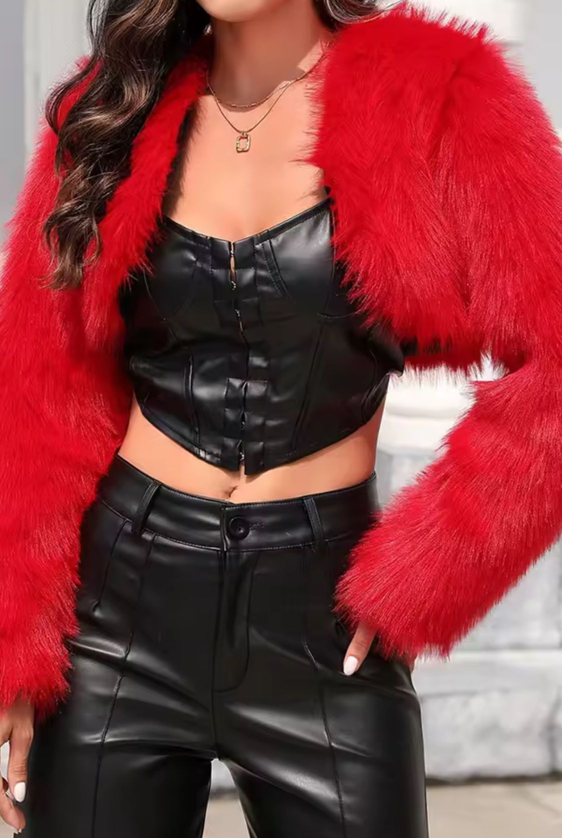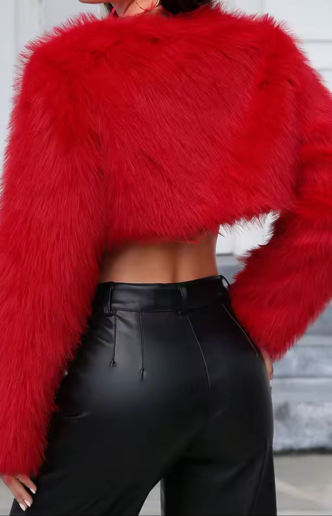Chaqueta cortita peluda en color rojo sintética