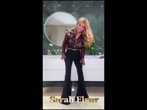A shimmering satin blouse with ruffles, lace, and sequins.