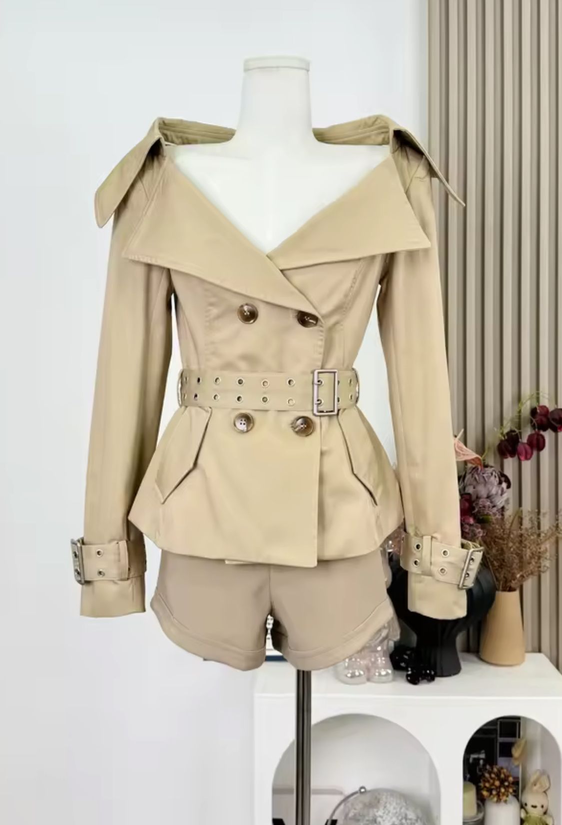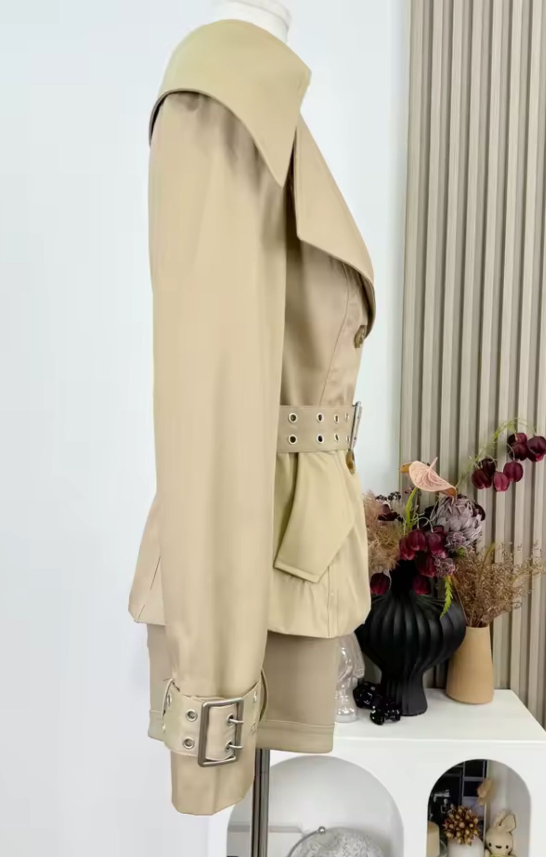 Conjunto de chaqueta gabardina y pantalones cortos a juego en color beige