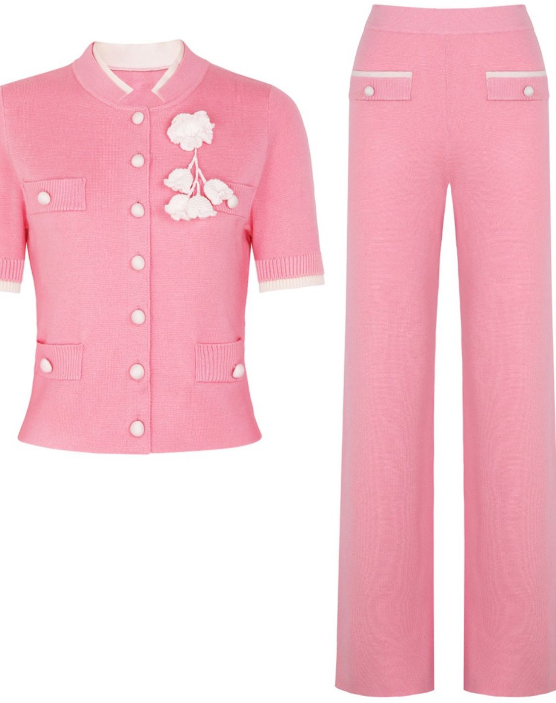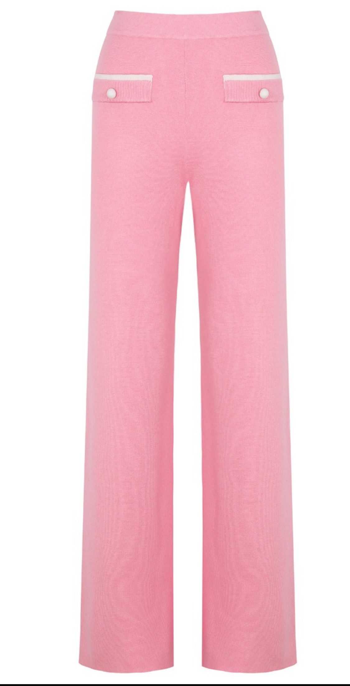 Stretch knit set consisting of a jumper and matching trousers in a delicate baby pink combined with white details