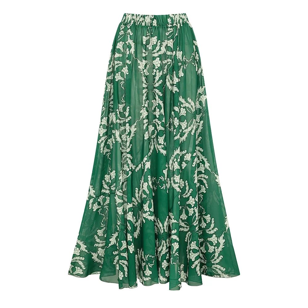 Elasticated swimsuit top and skirt set in green with beige print