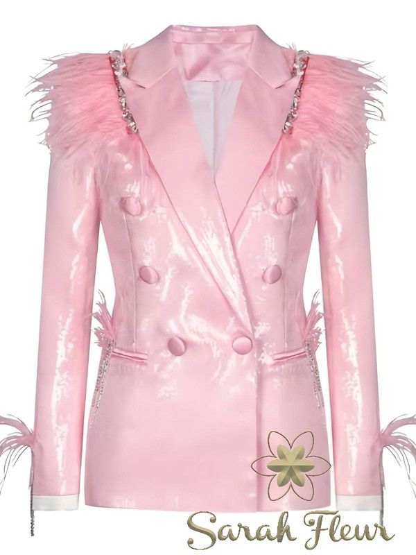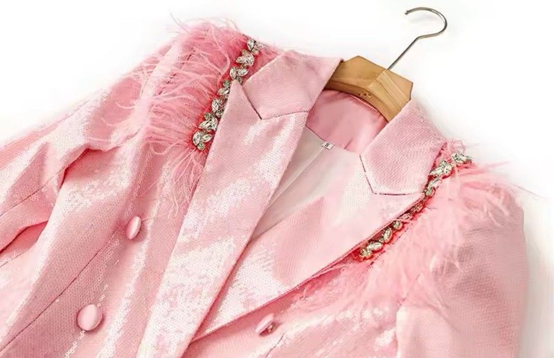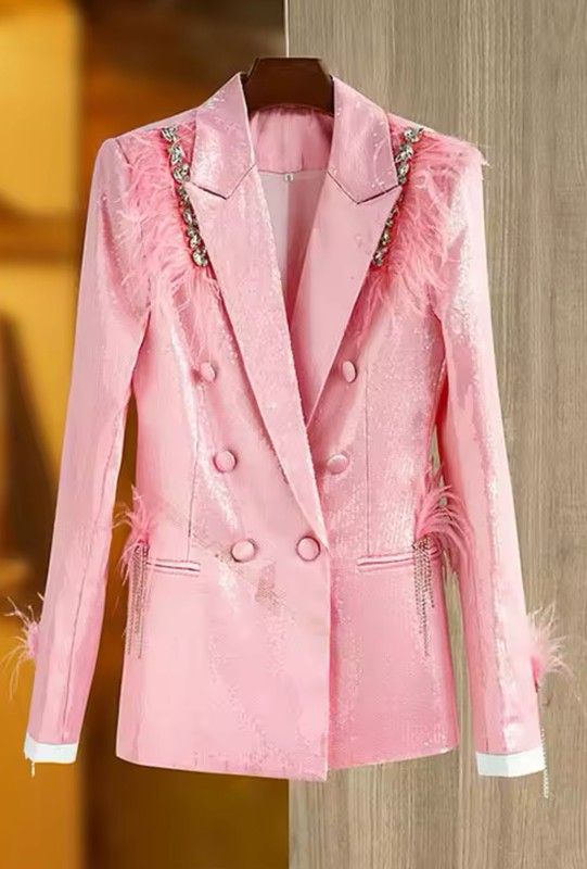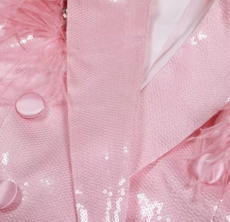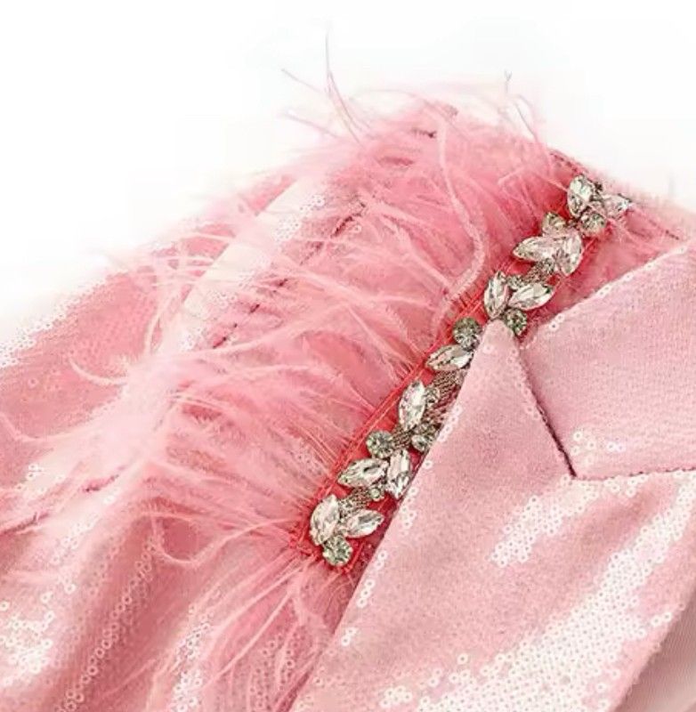 Fitted blazer with sequins, feathers and rhinestones in pink