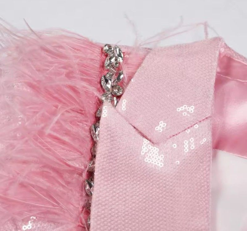 Each sequin shines brightly, the beading adds a touch of sophistication, and the feathers caress gently.