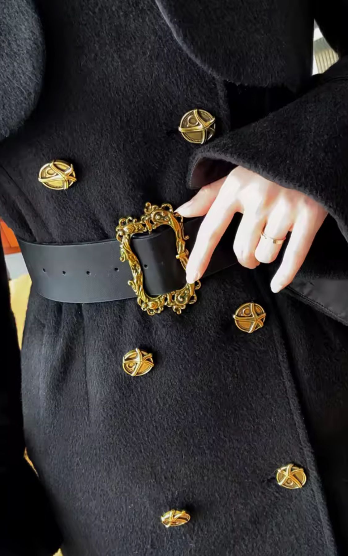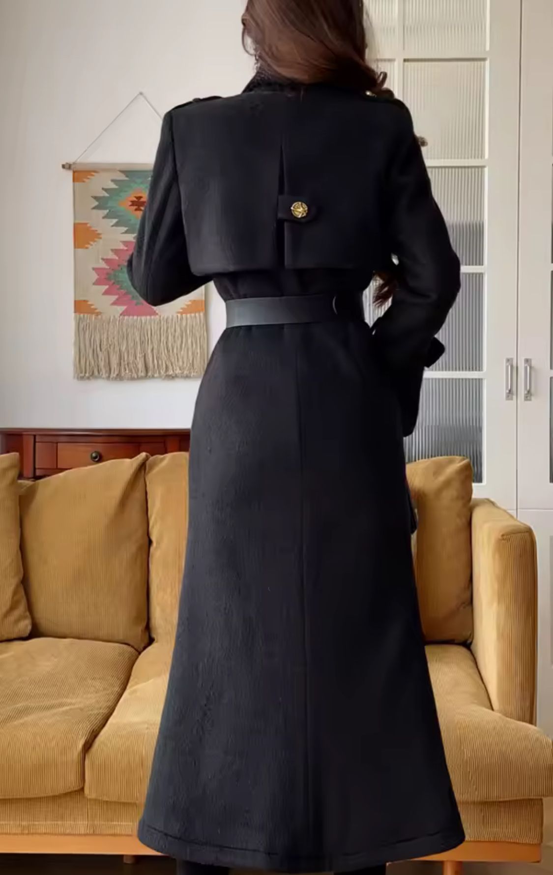 A beautiful black coat with a classic design and that chic touch that characterizes us.