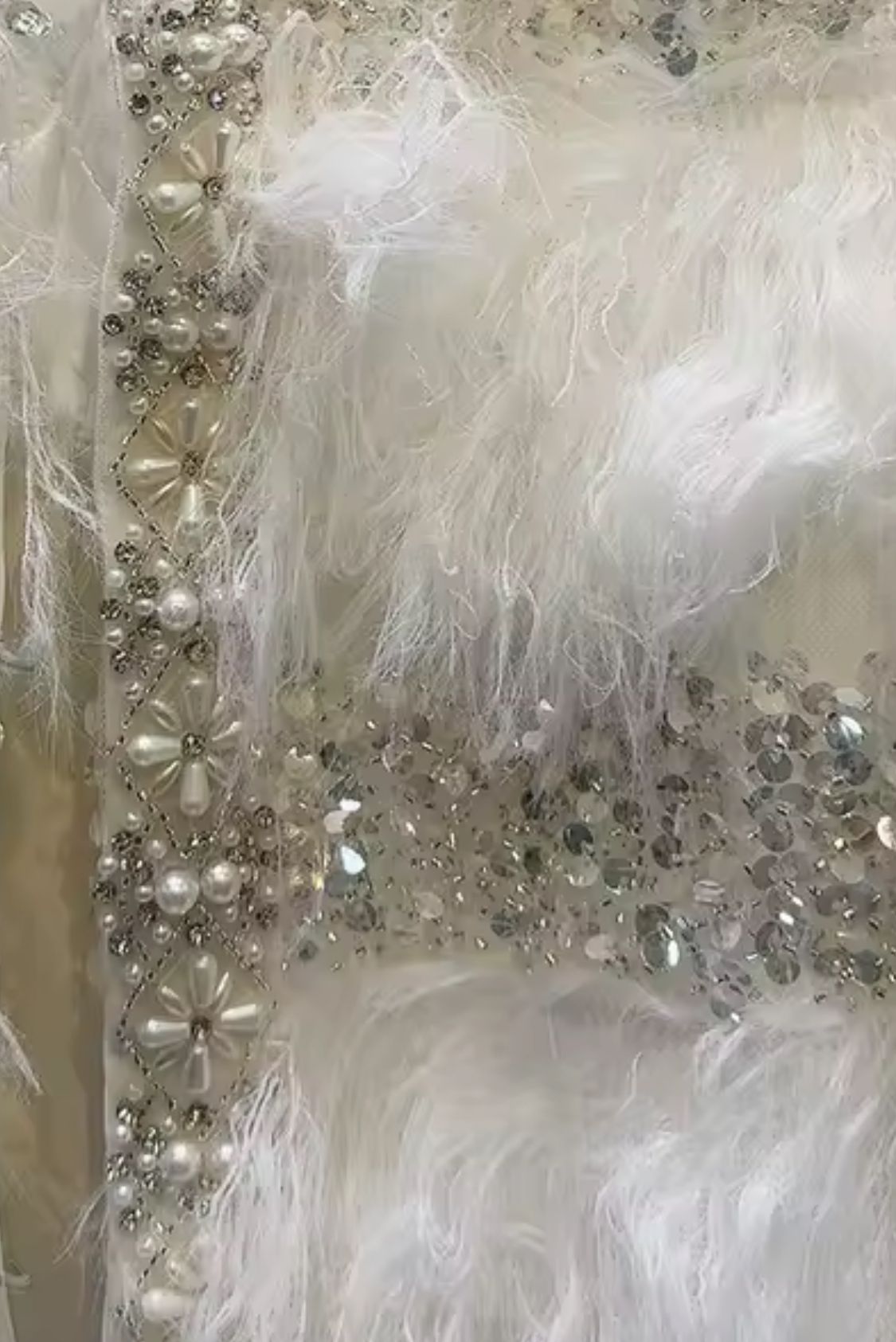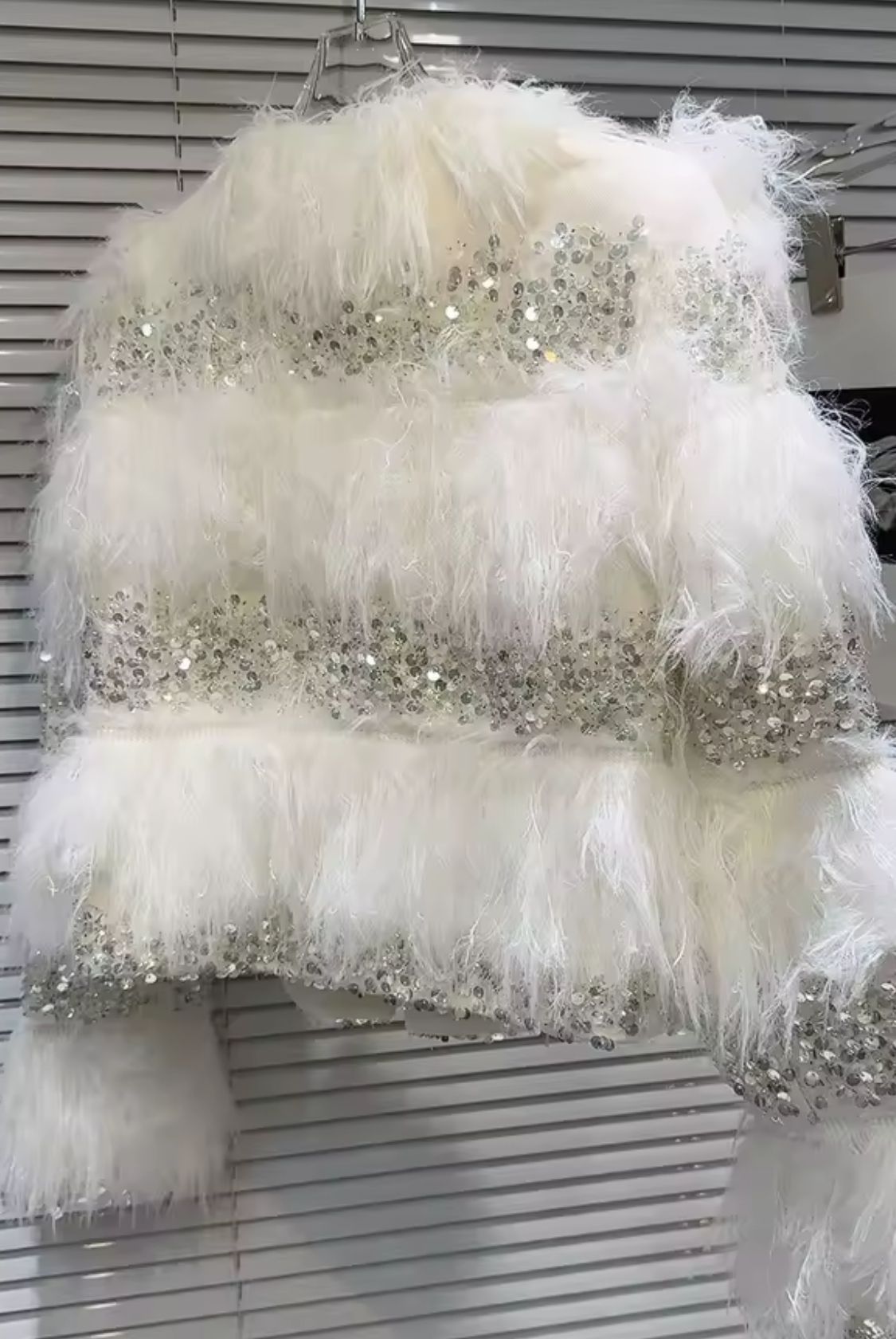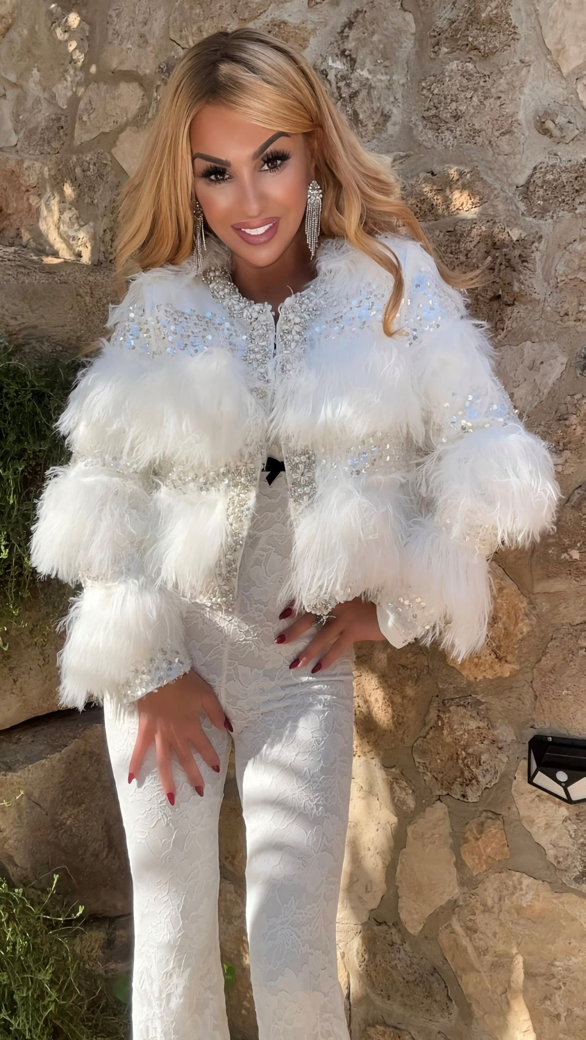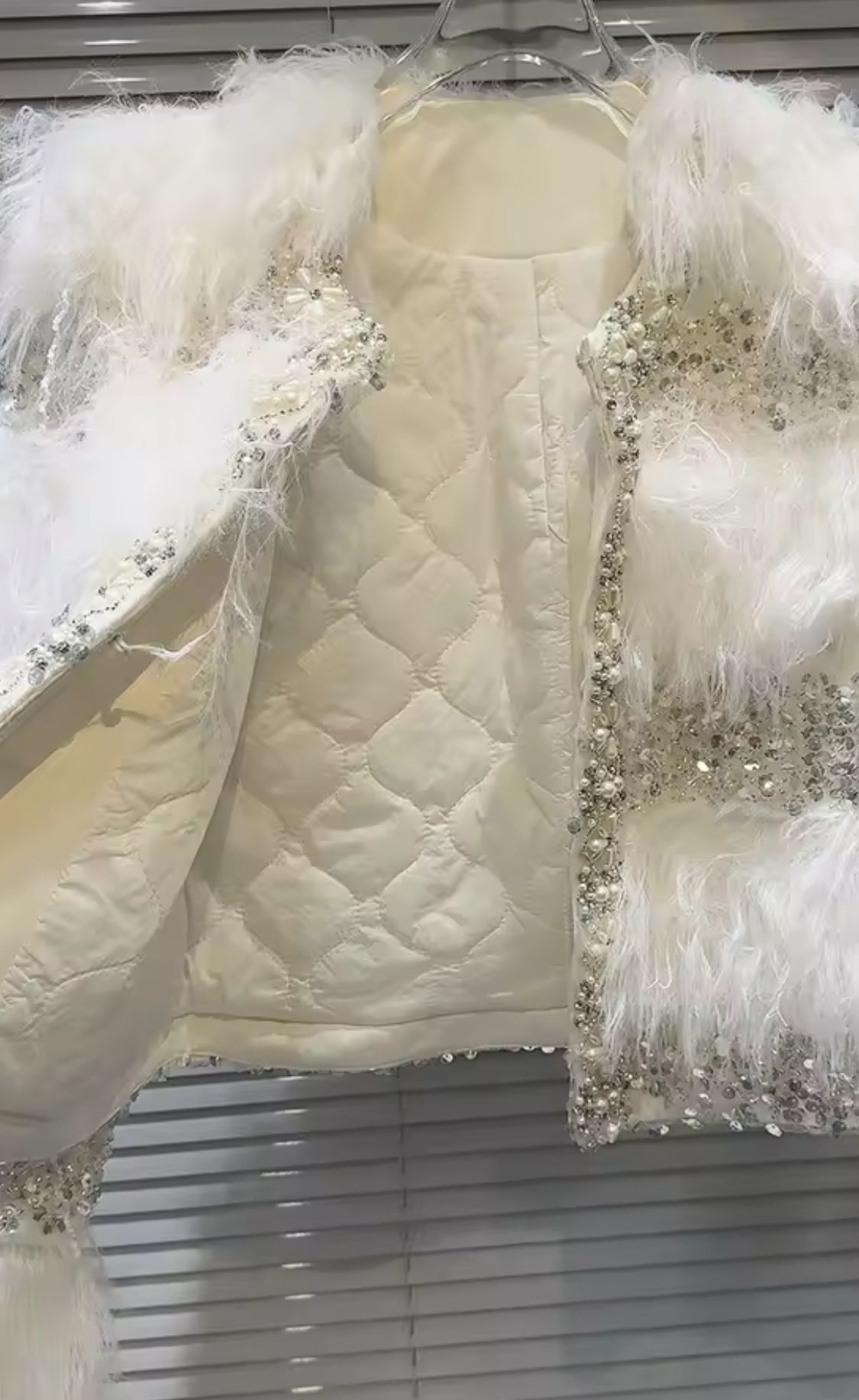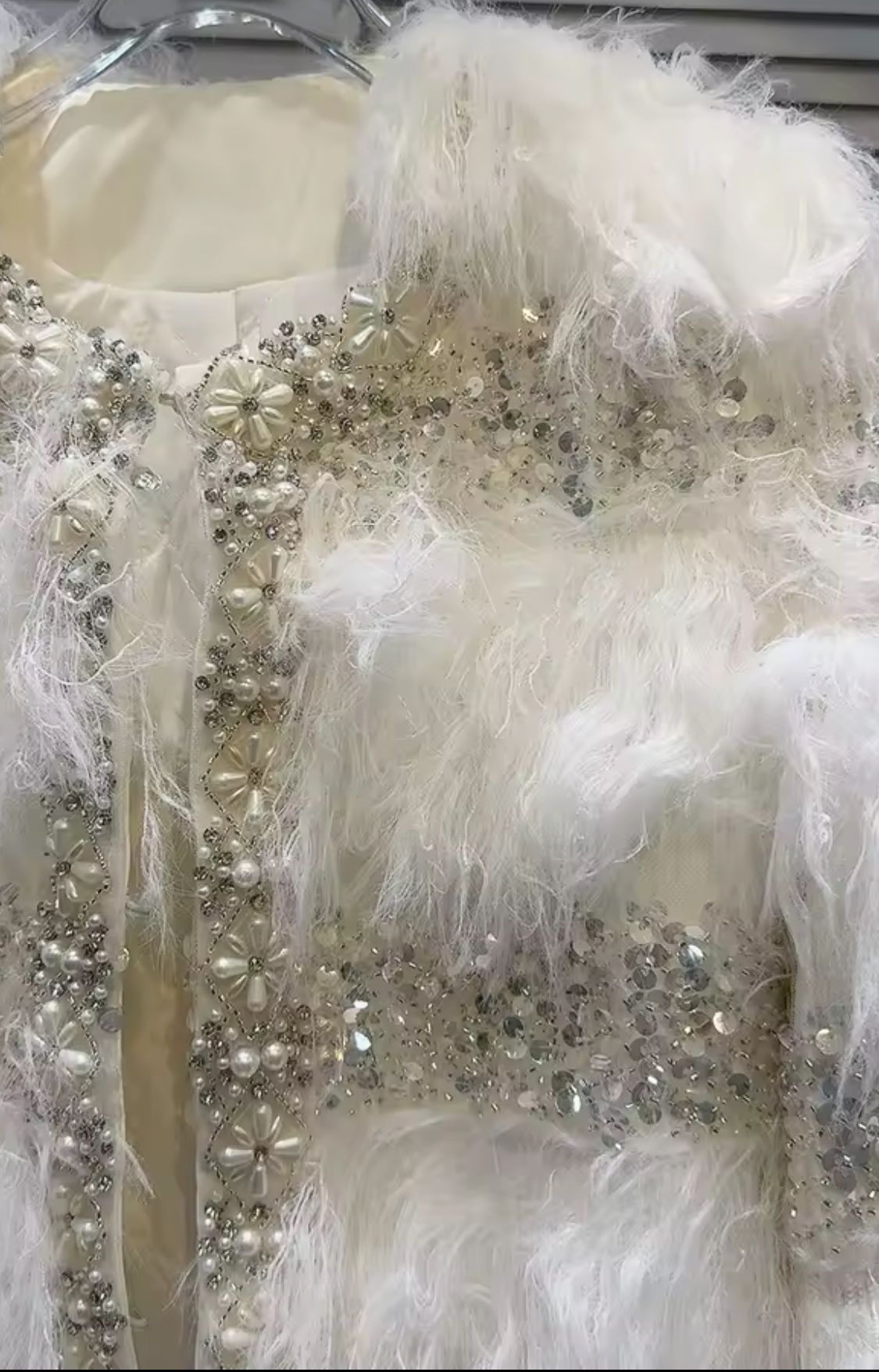 Delicate jacket in non-stretch fabric with spectacular pearl and silver sequin embellishments.