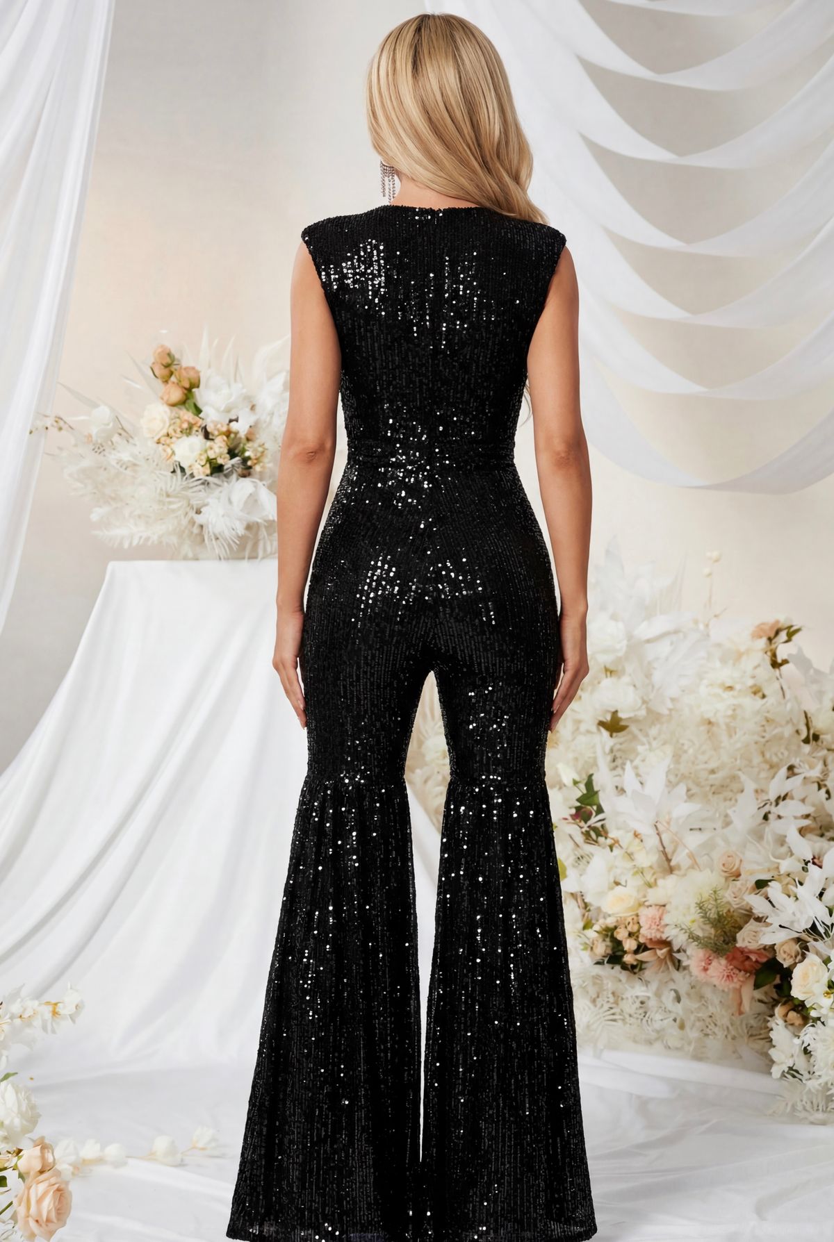 Mono elástico de lentejuelas acampanado en negro