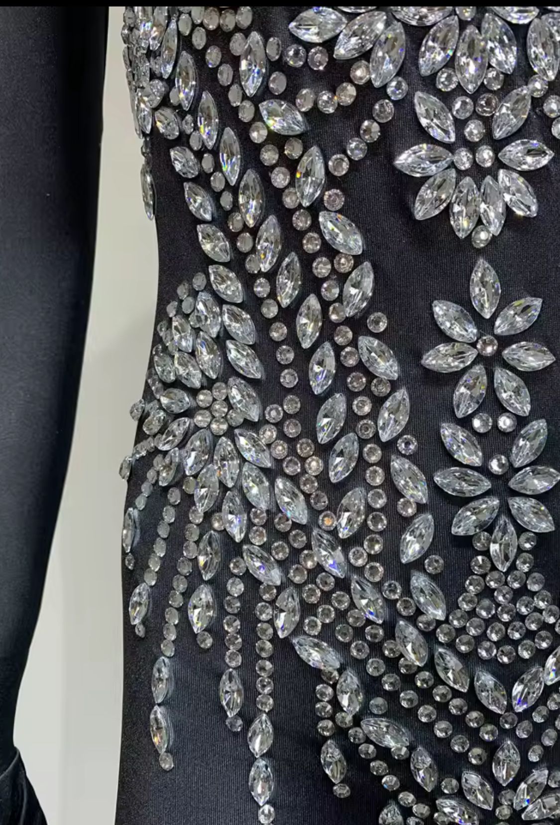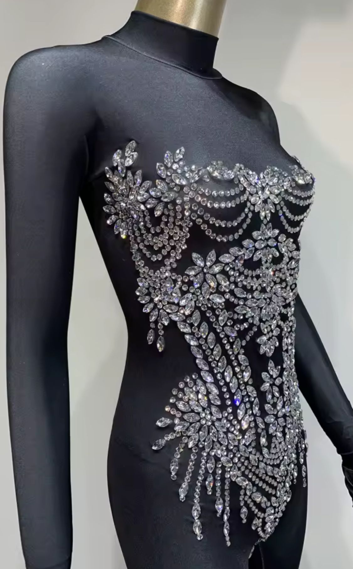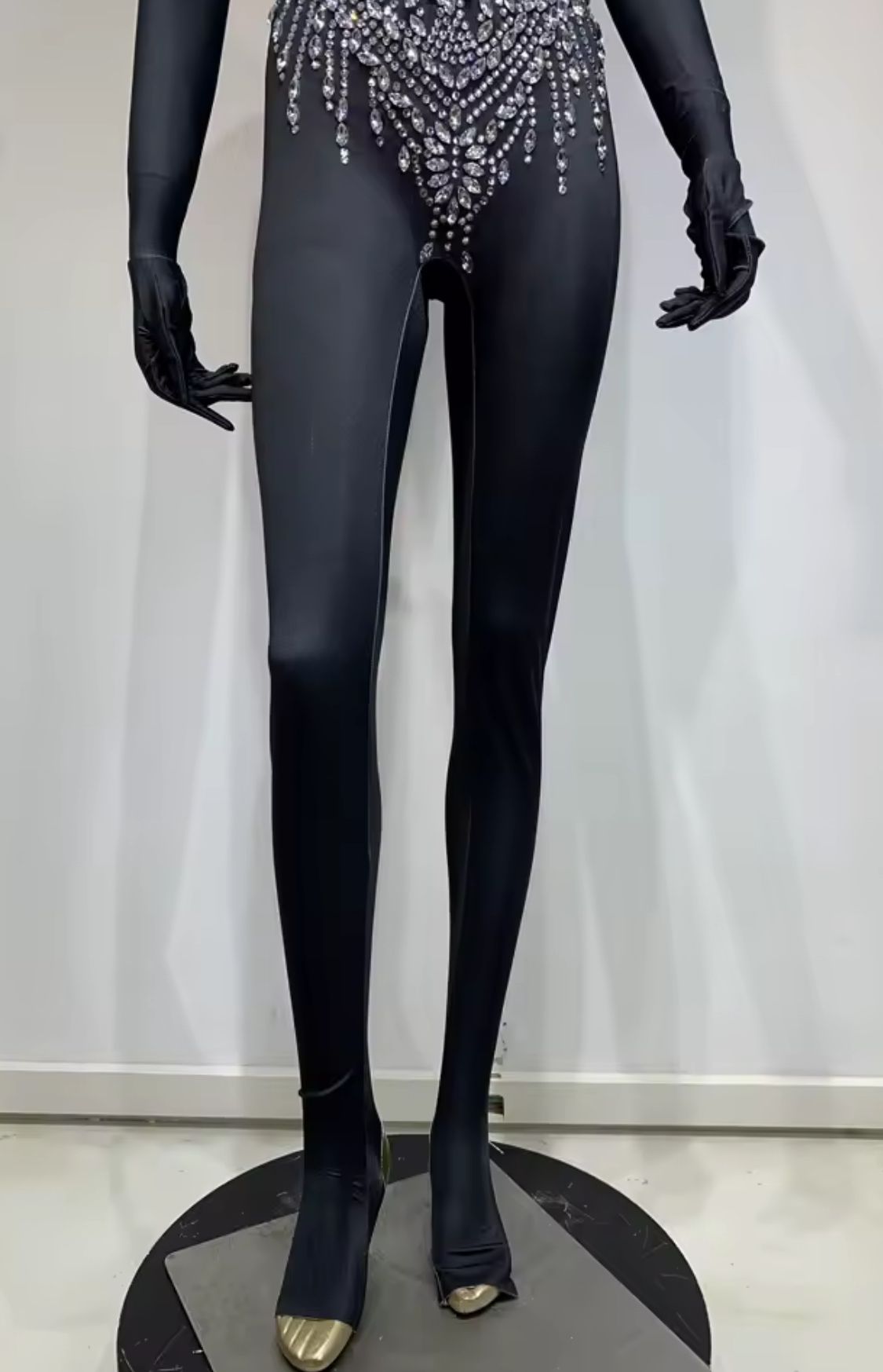 Mono de lycra elástico en color negro con pedrería plateada