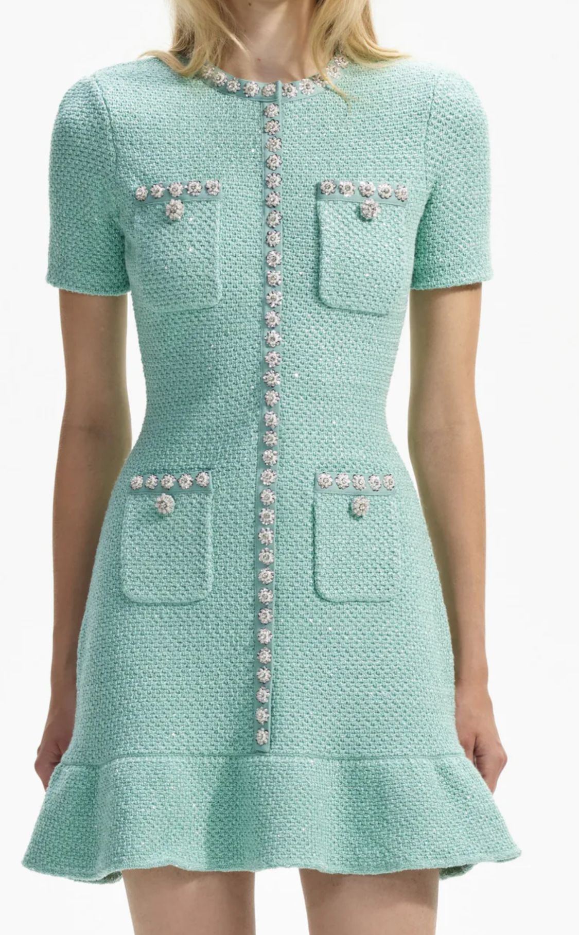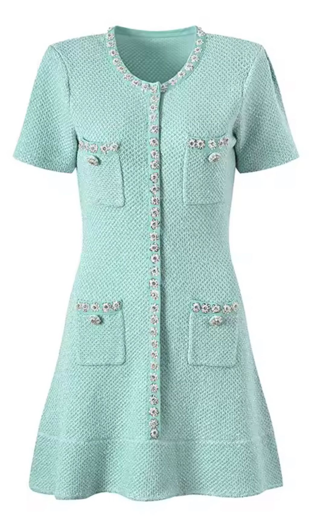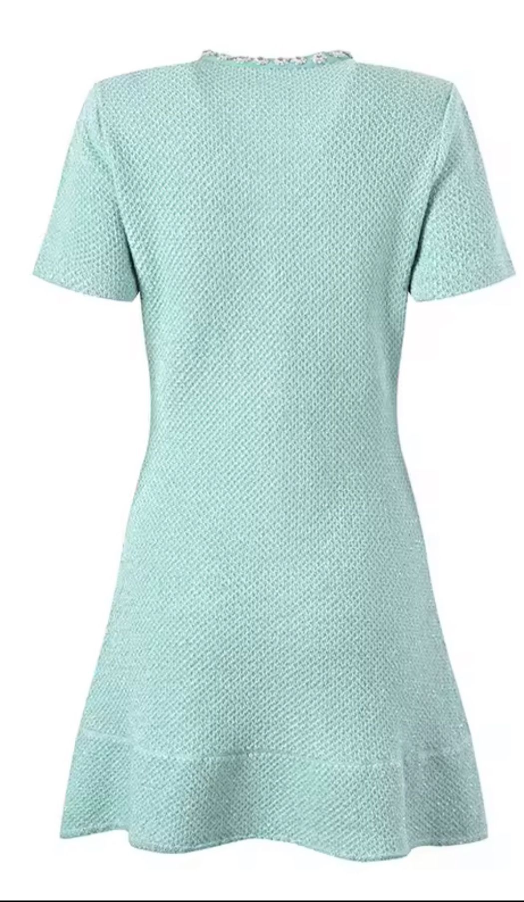 Vestido de punto en color verde menta con pedrería de manga corta