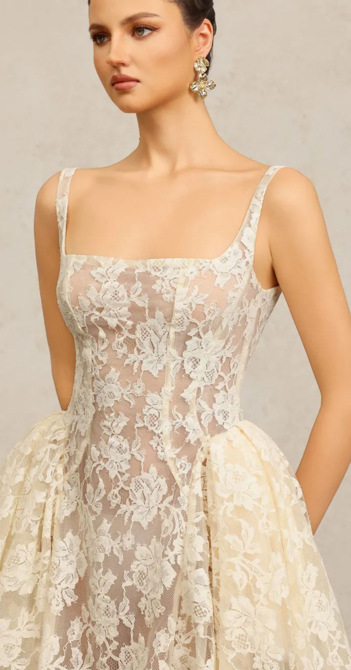 Un delicado y encantador vestido de alta calidad de encaje ligeramente elástico.