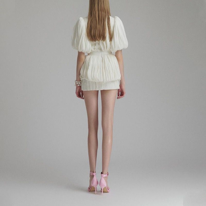 Fruncido plisado en todo el modelo que adelgaza la silueta.